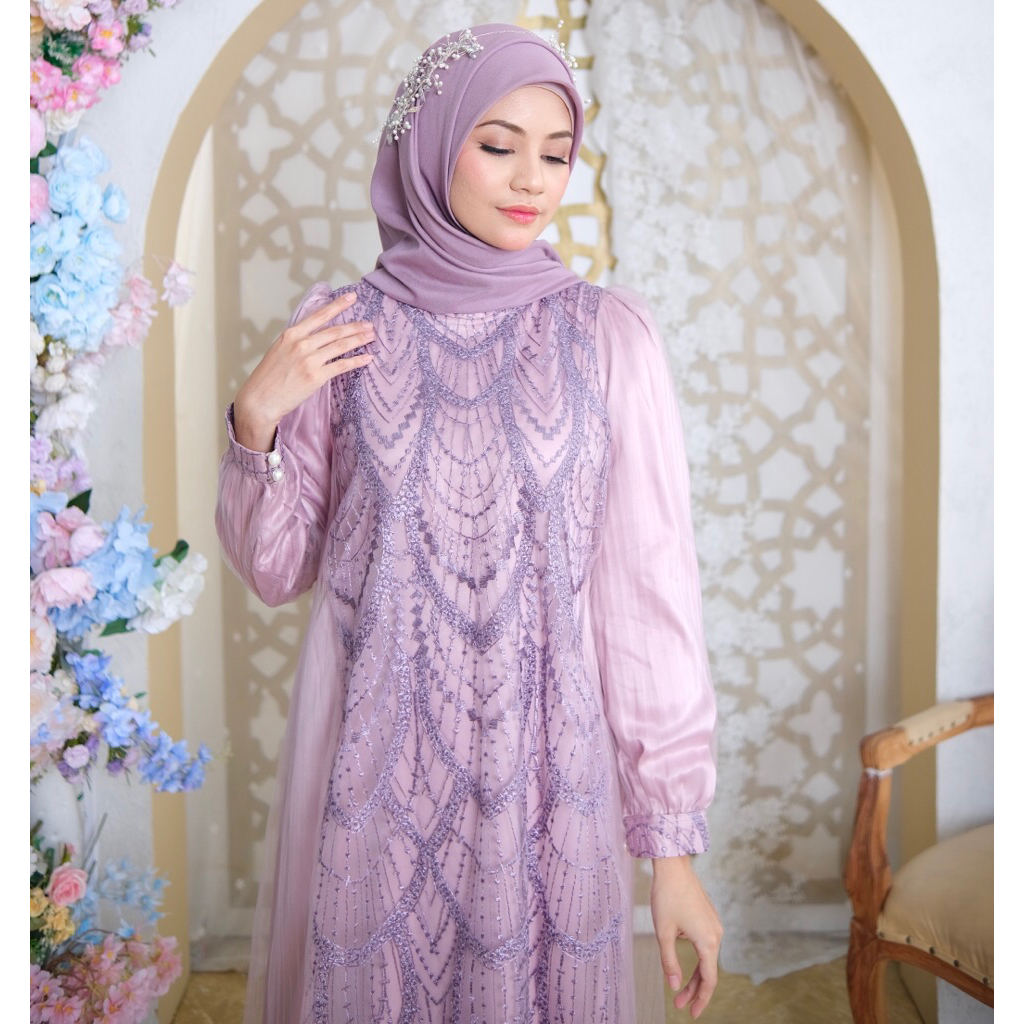 OUNADOUTFIT - DUNYA DRESS - dress brokat tille muslimah premium - gaun pesta wanita - dress lebaran mewah