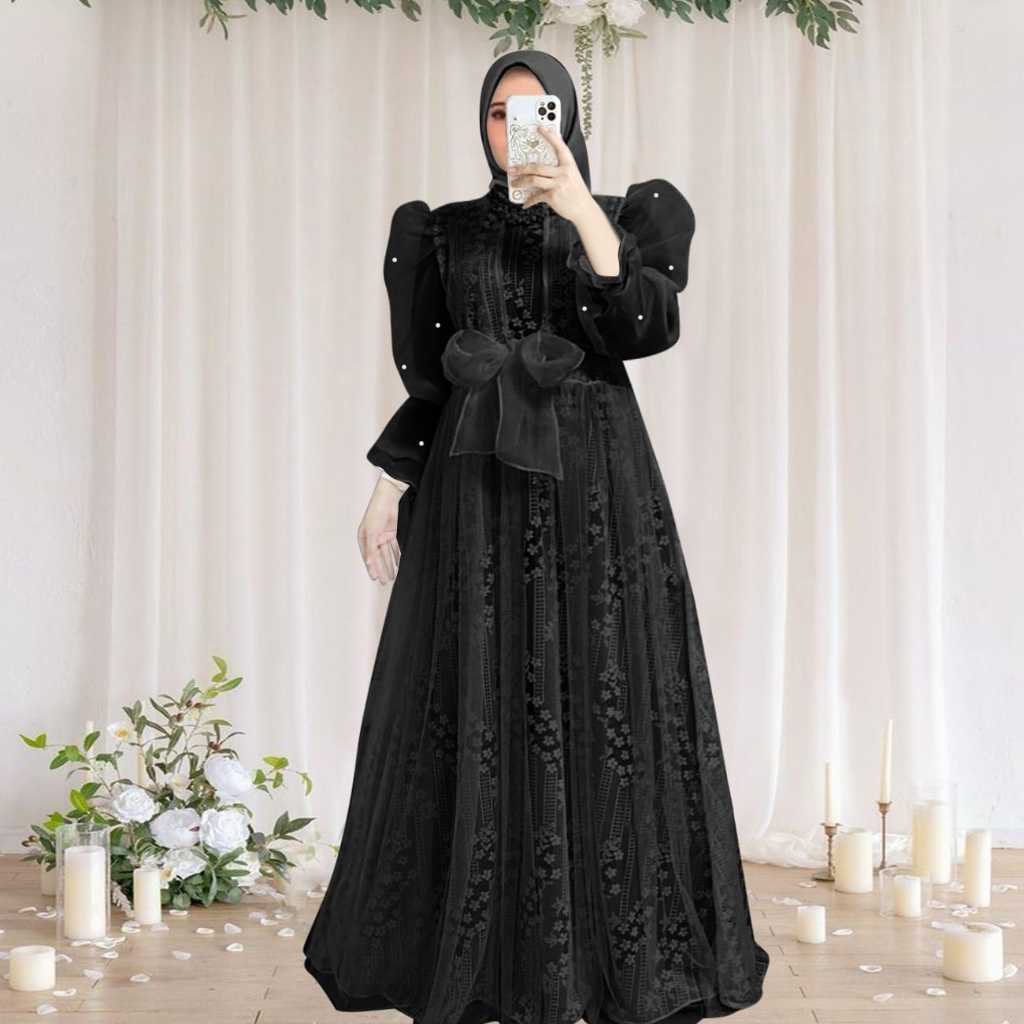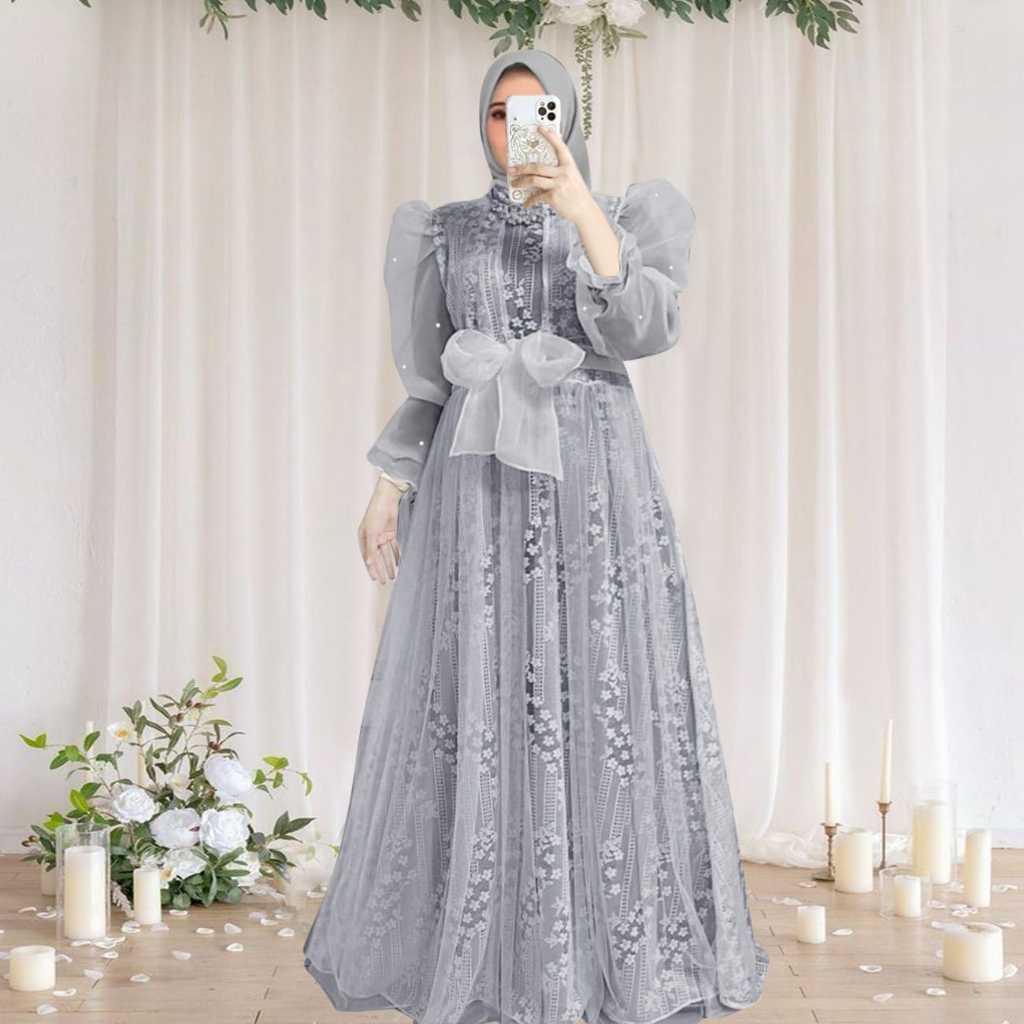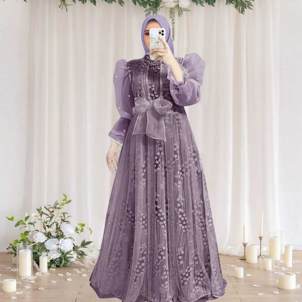 Tb91 Dress Gamis Lysaa oz4 brukat malika fashion muslim terbaik lebaran kondangan pesta gaun bunga kasual lengan panjang