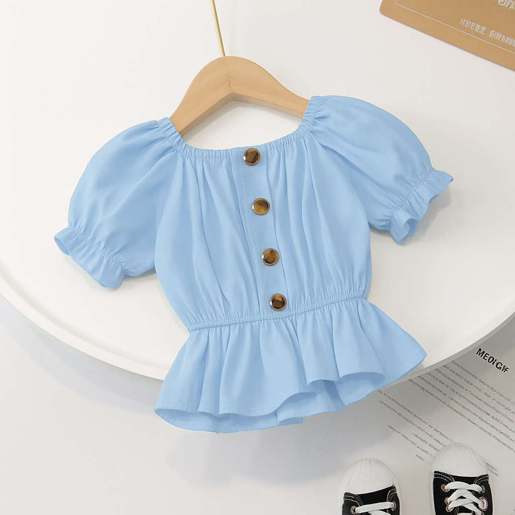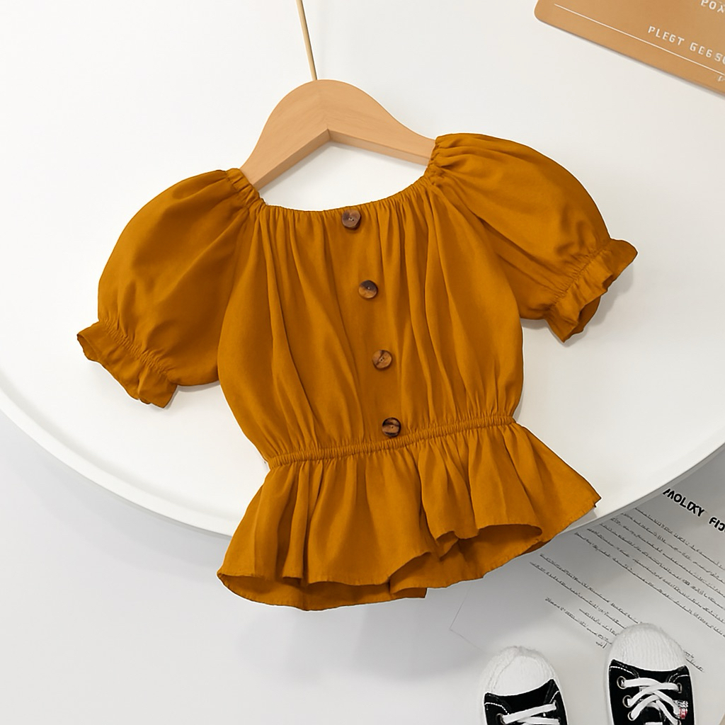 Baju Atasan Anak Perempuan Sabrina Kerut Umur 1 - 8 Tahun | Blouse Airflow Style Anak Lengan Pendek