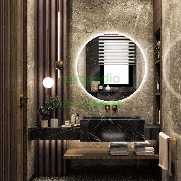 KACA CERMIN DINDING BULAT CERMIN RIAS CERMIN RAK DINDING MEJA RIAS MINIMALIS KACA LAMPU LED PUTIH WARM WHITE DIAMETER 40