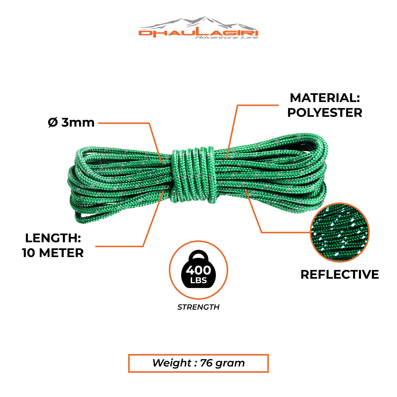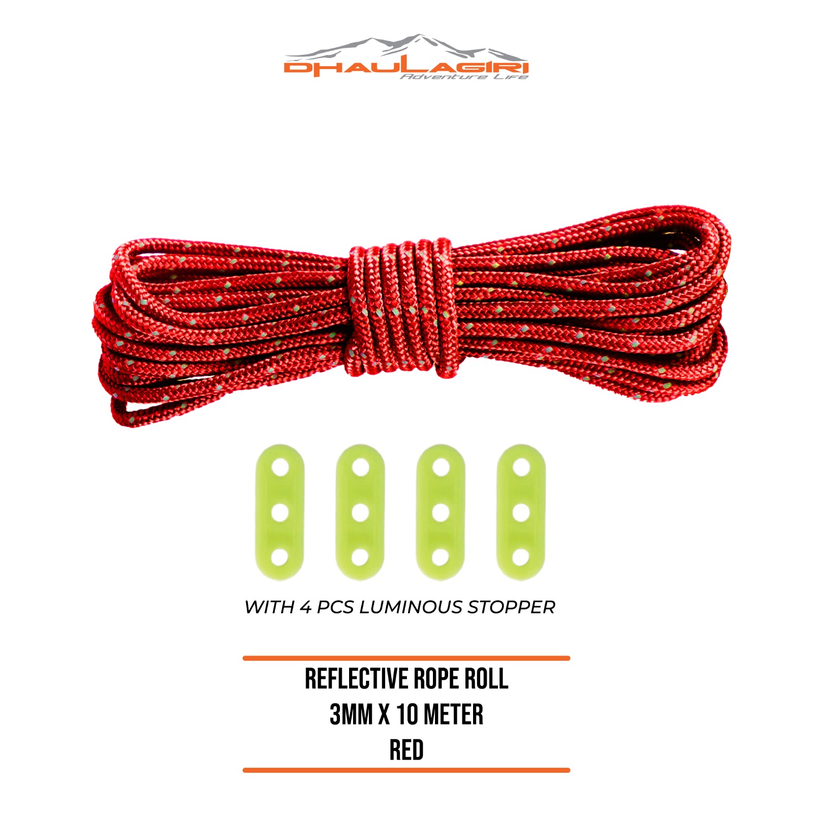 DHAULAGIRI REFLECTIVE ROPE ROLL 3MM X 10METER / TALI MULTIFUNGSI / TALI TENDA / TALI REFLECTIVE 10 METER