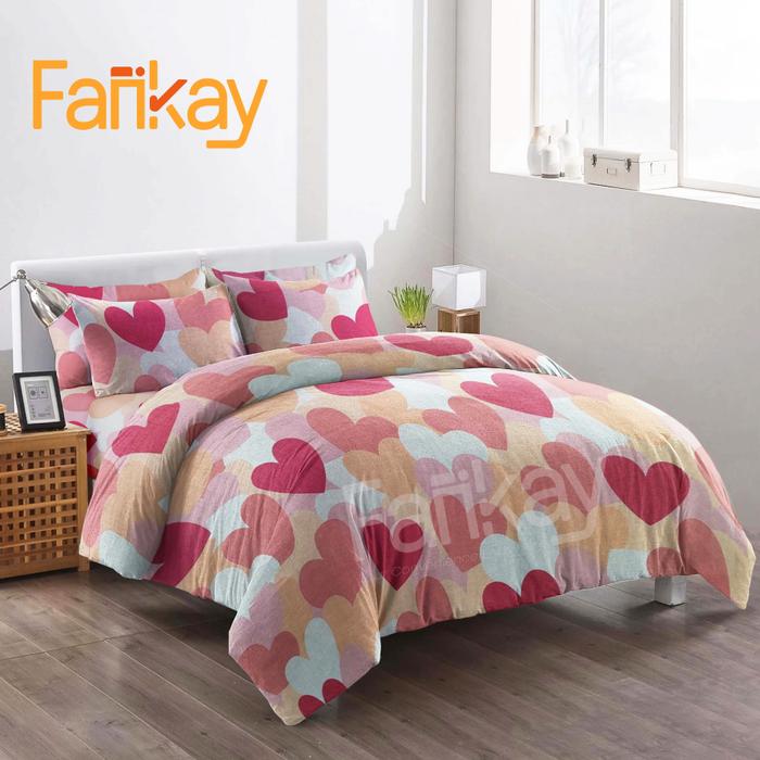 BED COVER SET SPREI LOVE PINK UKURAN LENGKAP FANKAY BEDCOVER SPREI SARUNG BANTAL SARUNG GULING KAIN 90X200 20