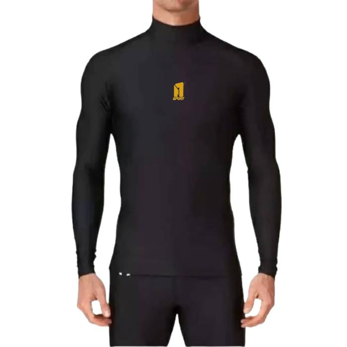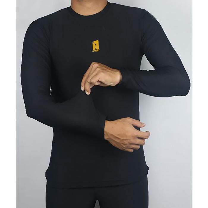 BASE LAYER MANSET OLAHRAGA PRIA WANITA LENGAN PANJANG MANGSET SEPEDA FUTSAL LARI VOLI SPORT JERSEY HITAM NJ S