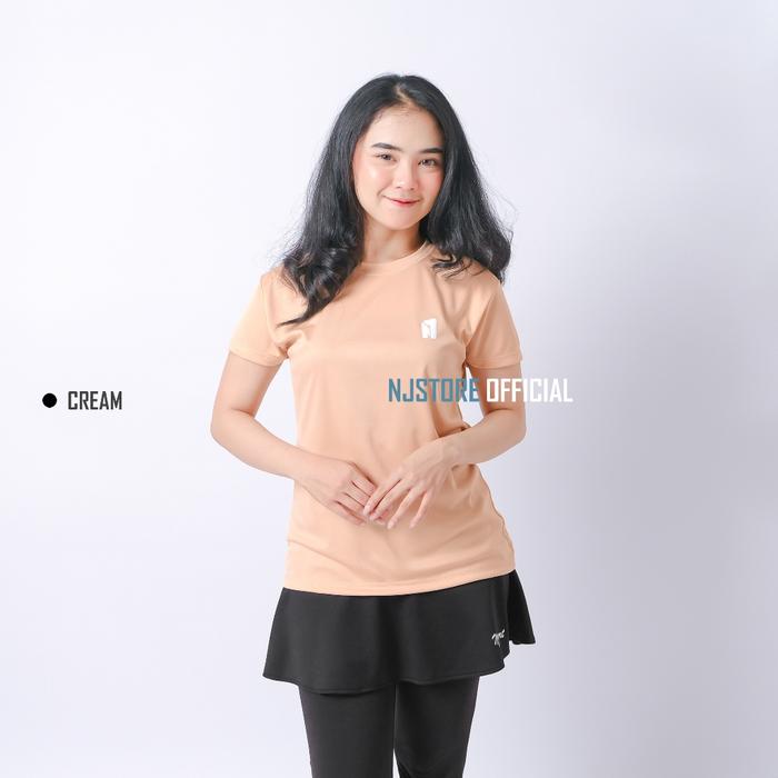 BASE LAYER MANSET OLAHRAGA WANITA LENGAN PENDEK MANGSET LARI VOLI SENAM ZUMBA BAJU SPORT MWP CREAM S