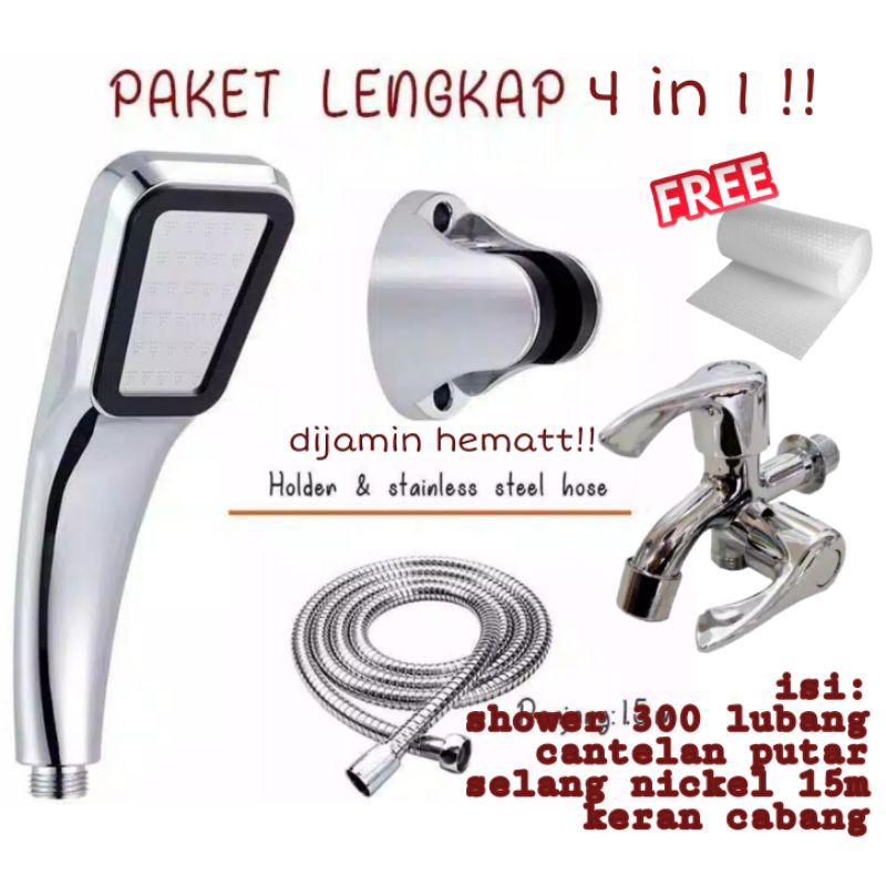 KERAN PAKET LENGKAP 4IN1 SHOWER AERATOR 300 LUBANG + SELANG+BRACKET