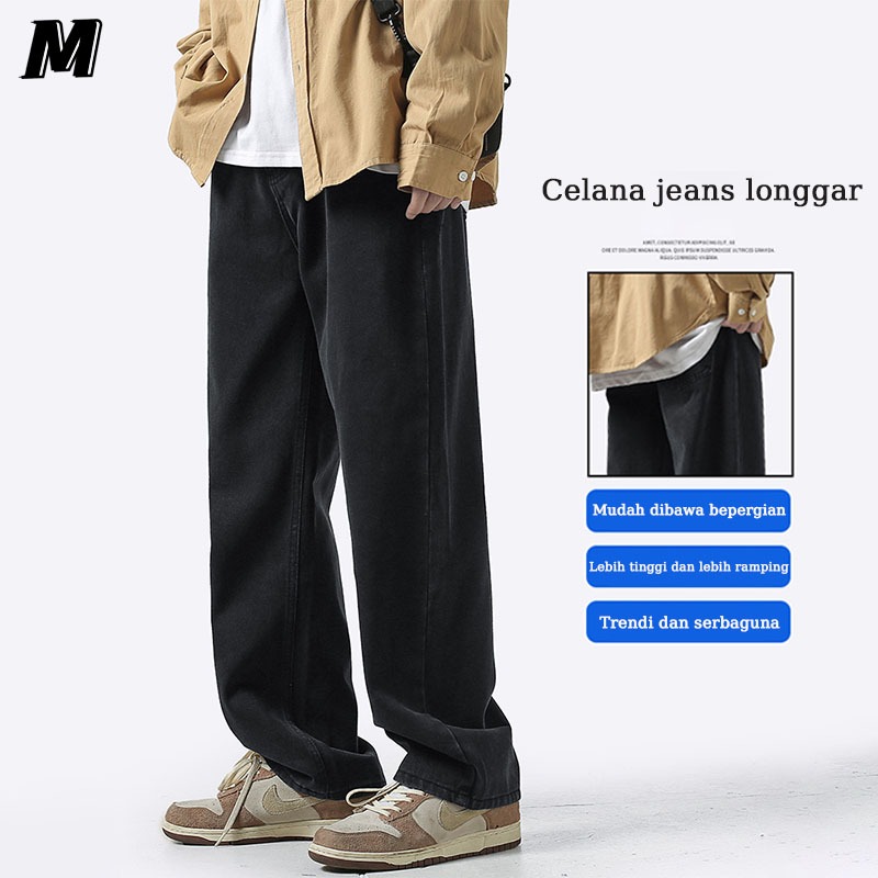 Celana Jeans Hitam Pria Baggy Korean Style Model Kulot Oversize Straight Boyfriend Jeans Celana Panjang