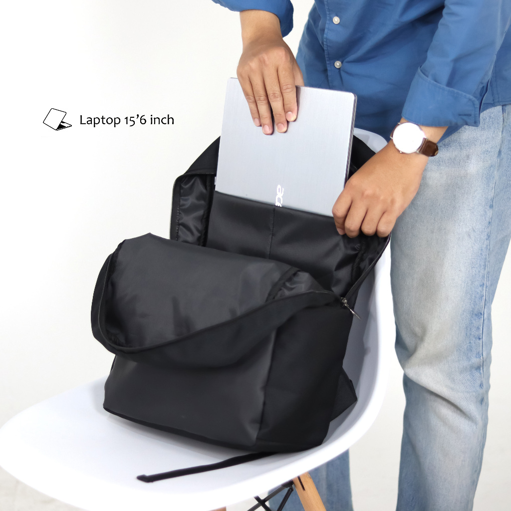 GRATIS ONGKIR GH-Bag Tas Sekolah Ransel Backpack Bima Houston Cowok Cewek Kuliah Cordura Hitam Kanvas Tas Laptop Pria