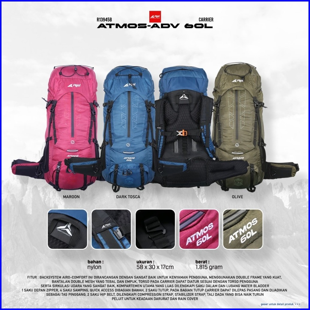 Tas Carrier Atmos Adv 60 Liter Arei Outdoorgear