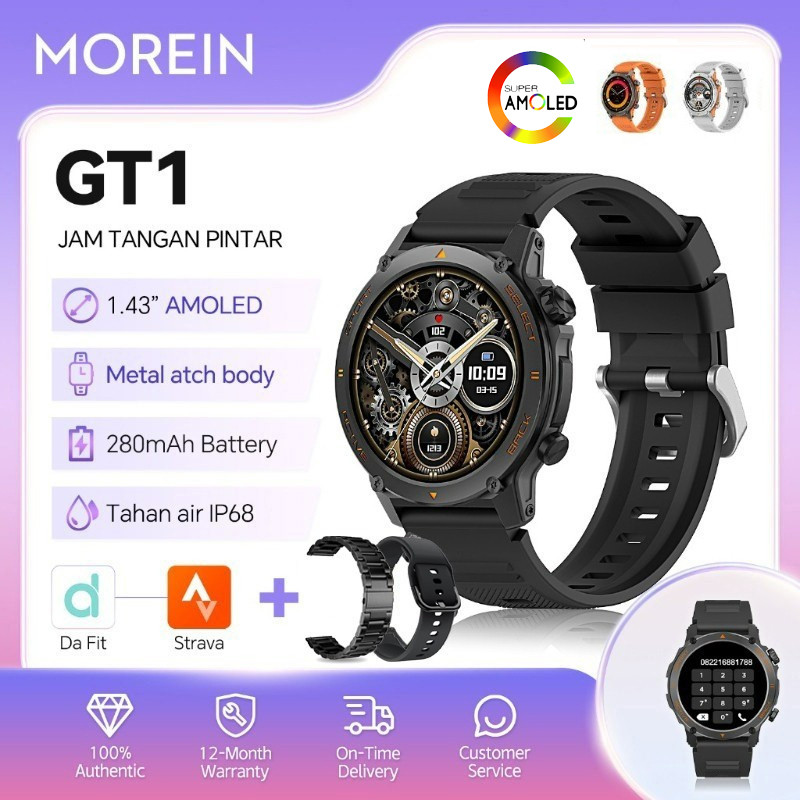 Morein GT1 Smartwatch 1,43” AMOLED IP68 Waterproof Bluetooth Panggilan Notifikasi Health Monitoring