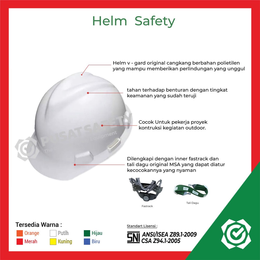 Helm Proyek Safety MSA V-Gard Original with Fastrack