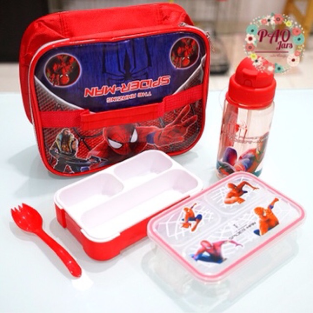 set bekal spiderman / tempat makan doraemon TERMURAH / lunch box anak / tempat makan LOL