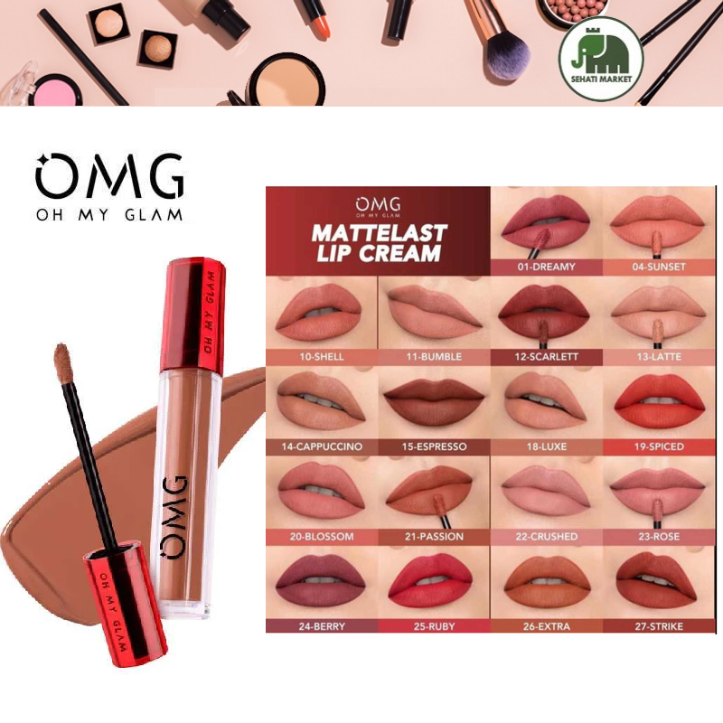 OMG 01 Dreamy , OMG 04 Sunset , OMG 10 Shell, OMG 11 Bumble , OMG 12 Scarlet, OMG 13 Latte, OMG 14 Cappucino , OMG 15 Espresso, OMG 18 Luxe, OMG 19 Spiced , OMG 20 Blossom, OMG 21 Passion, OMG 22 Crushed, OMG 23 Rose , OMG 24 Berry, OMG 25 Ruby , OMG 26 EXTRA , OMG 27 Strike, OMG 28 Cromboloni , OMG 29 Berry Pancake, OMG 30 Cookie Bomb , OMG TINT 01 Crepe, OMG TINT 02 Sienna , OMG TINT 03 Spring, OMG TINT 04 Burgundy , OMG TINT 05 Caramel