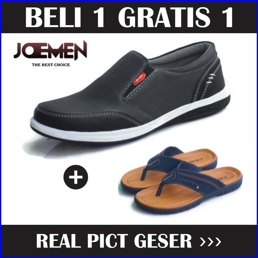 Joemen Sepatu Pria Kulit Joemen Bundling J 28 Free S 01 Tan Hitam Kasual Santai Pria