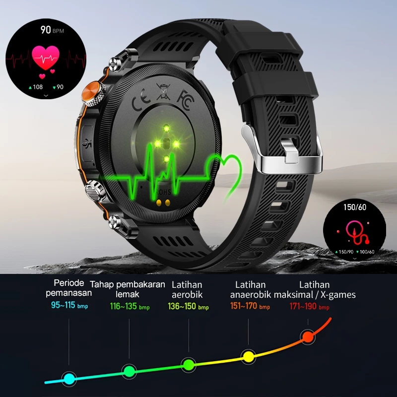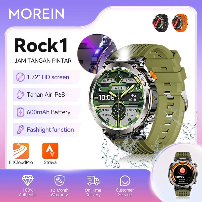 [Lampu Night Vision & UV] Morein Rock1 Smartwatch 1,7” Layar IPS, IP68 Waterproof, Sport Tracker, Bluetooth 5.0, Monitor