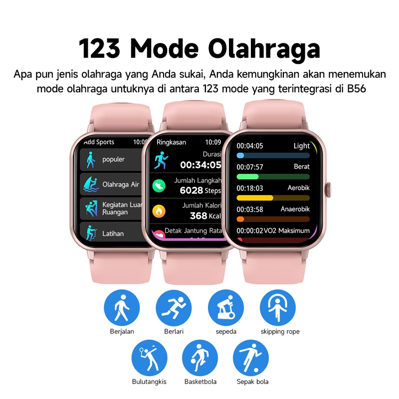 BOZLUN Smartwatch B56 1.83inch Deteksi Tekanan Darah Sport Tracker Data tidur Bluetooth Call Data tidur jam tangan wani