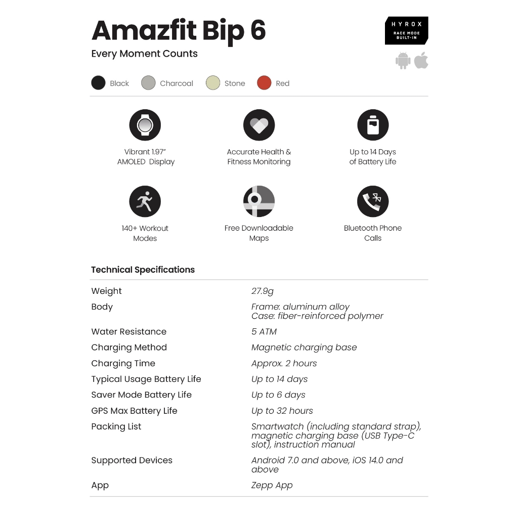 Amazfit Official Bip 6 Smart Watch 46mm AI Voice Assistance Maps with GPS 140 Sports es sport watch
