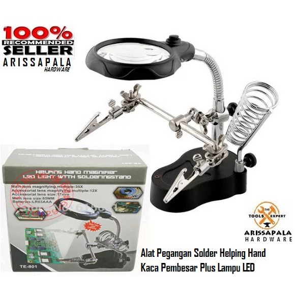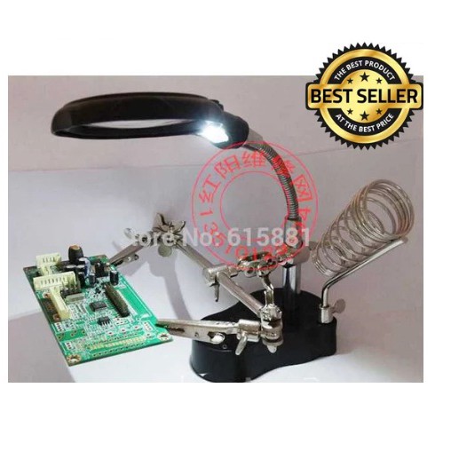 Helping hand alat servis Hp dilengkapi penjepit PCB stand solder lampu Kaca Pembesar plus Lampu LED