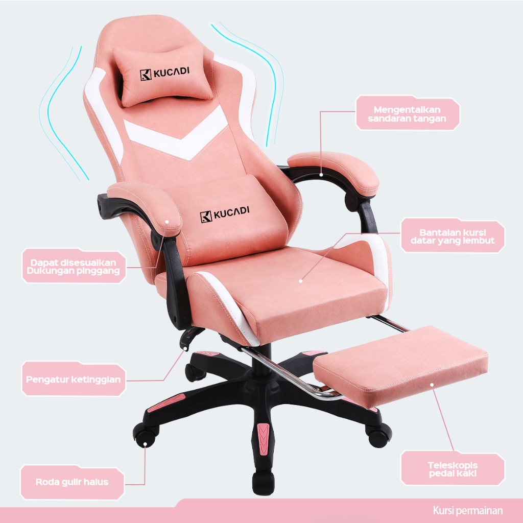 KUCADI kursi gaming Pink / kursi Kantor / katun Dan Linen Bernapas / kursi kerja / kursi belajar / kursi santai / Gaming