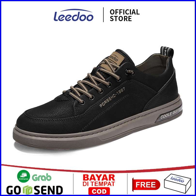 Leedoo Sepatu Tali Hitam Kulit Pantofel Sepatu Pria Formal Sneakers Original 100 Shoes Mc421