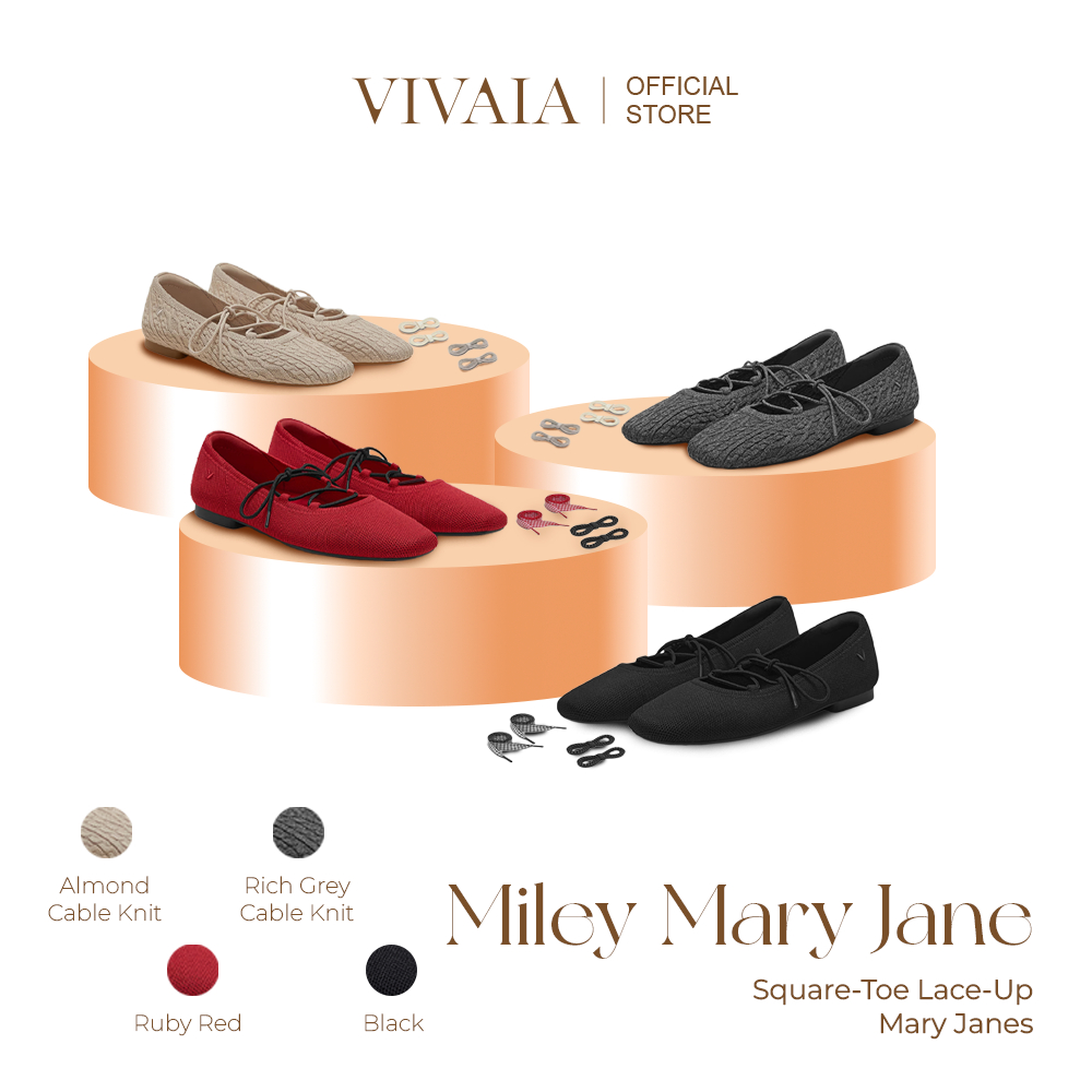VIVAIA Sepatu Wanita 3 Laces Included Square-Toe Lace-Up Mary Janes (Miley)