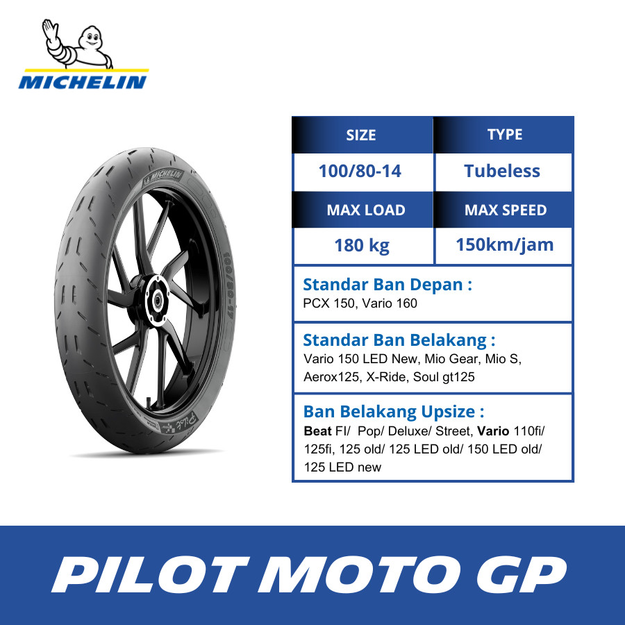 Ban Motor Matic Mio, Vario, Beat Pilot Moto GP - ukuran 100-80 R14 Tubeless
