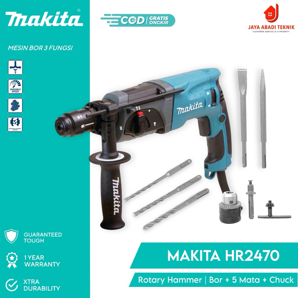 BOR BOBOK SDS MAKITA HR2470 DENGAN 3 FUNGSI HAMMER DRILL