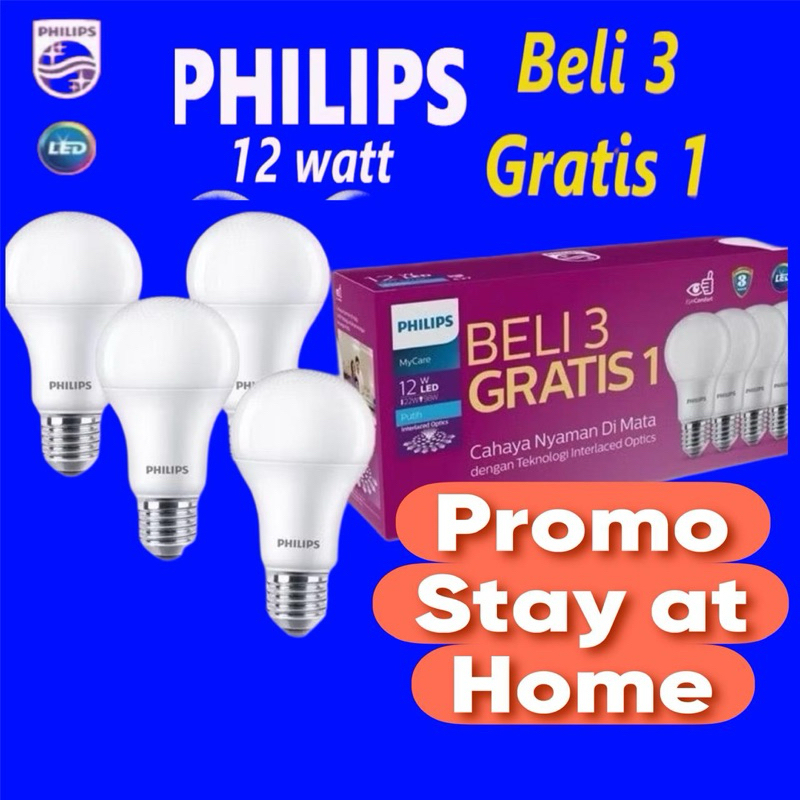 (PAKET ISI 4)... Lampu philips led 12watt promo multipack MyCare Bulb 12W beli 3 gratis 1