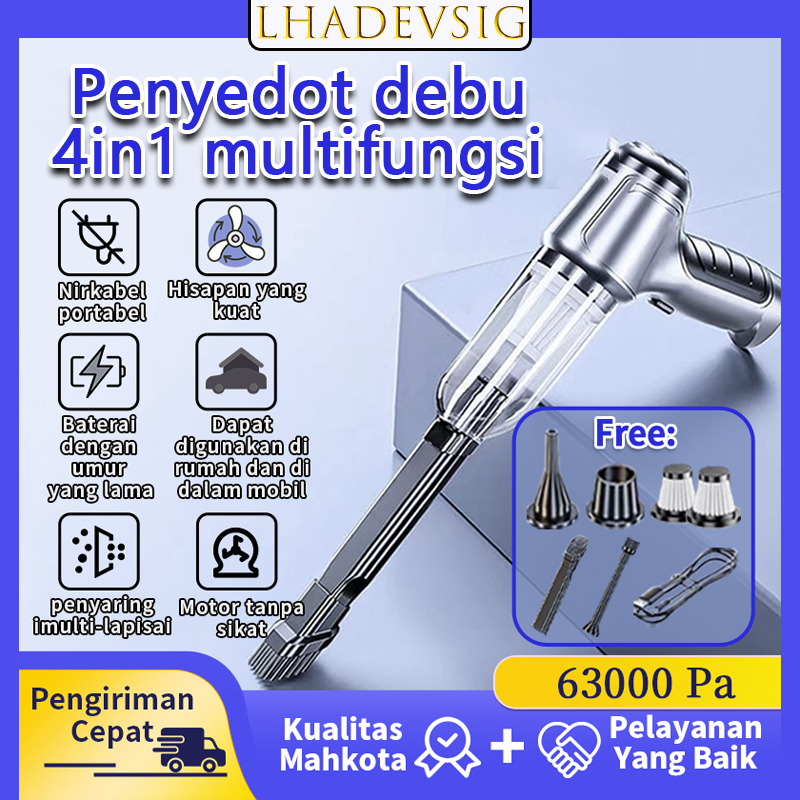 LHADEVSIG 4 in 1 Vacum Cleaner Mobil 3 Filter Penyedot Debu Multifungsi Cordless Vacuum Cleaner Portable Tiup/Hisap/Meng