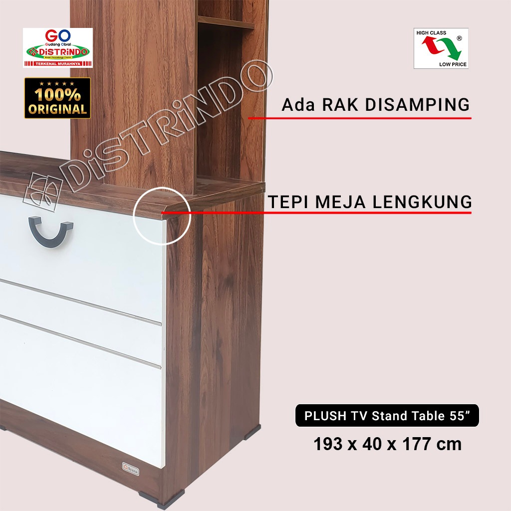 lemari hiasan ruang tamu Distrindo - Bufet Rak Meja TV 45~55" Minimalis Mewah Murah TEBAL dengan Lemari Hias Kaca + Laci