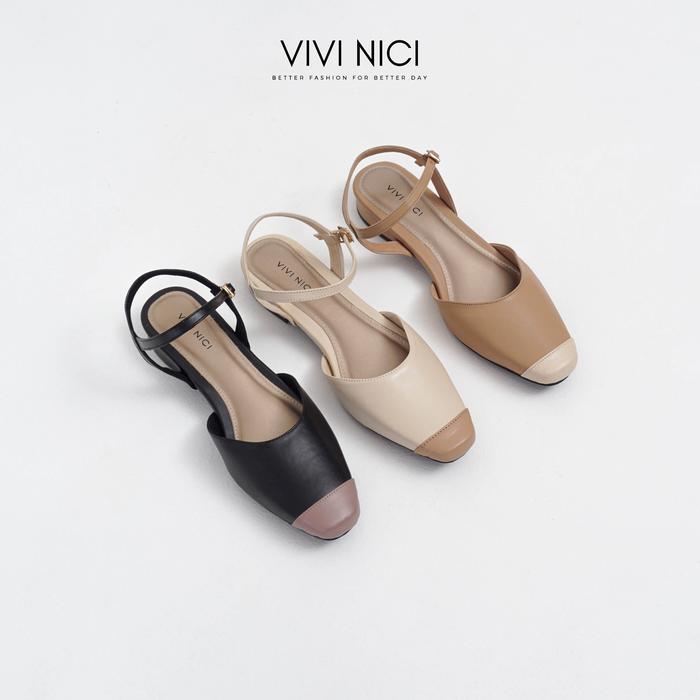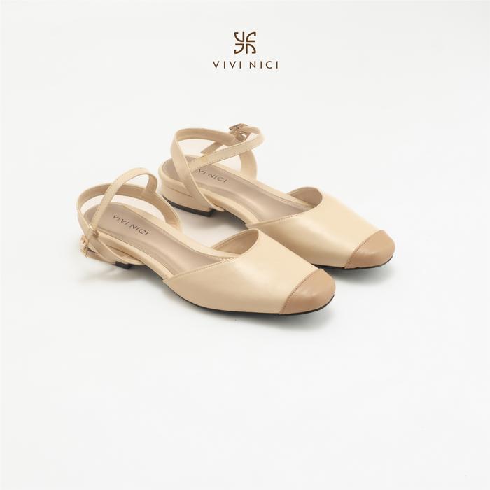 TERLARIS CHARLOTTE SEPATU SANDAL MULES HAK 2 CM SHOES WANITA SENDAL PESTA CANNOLI CREAM 37