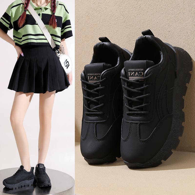 CaniKorea Free Box Ruka Fullblack Sepatu Wanita Sneakers Fashion Casual Korean Look 9007