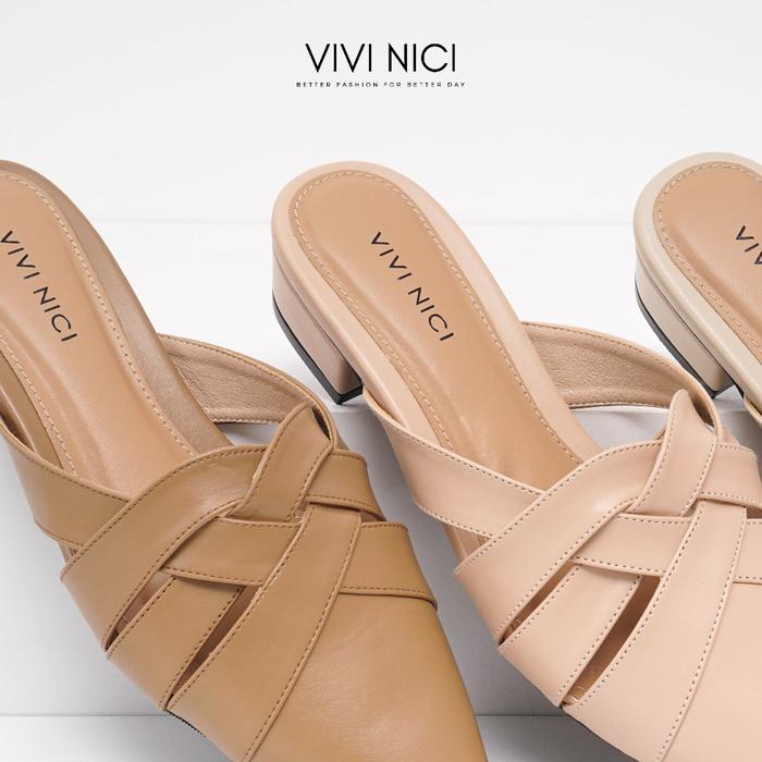 TERLARIS TISYA SEPATU SANDAL MULES WANITA HAK 3 CM SHOES MERAH PINK SENDAL MILK COFFEE 36