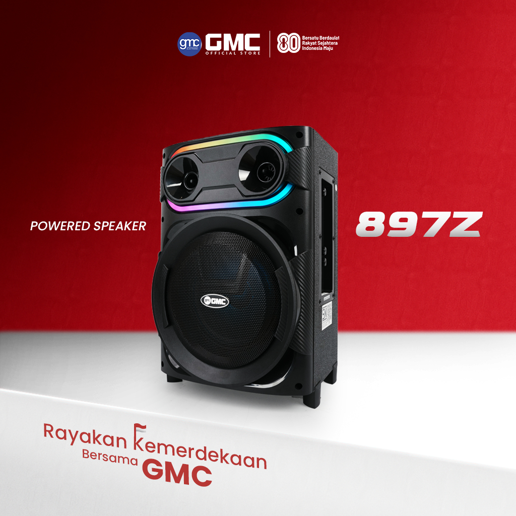 GMC Speaker 897Z – Bluetooth KaraoSD, AV In, FM Radio, Kake Speaker 8" – 120W, USB, roke Jack aktif mik full bas terbaru