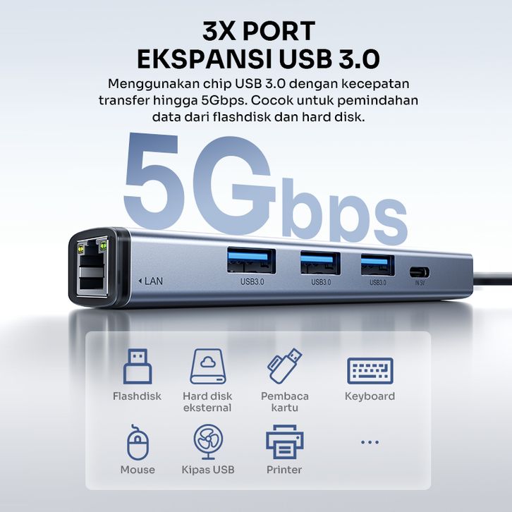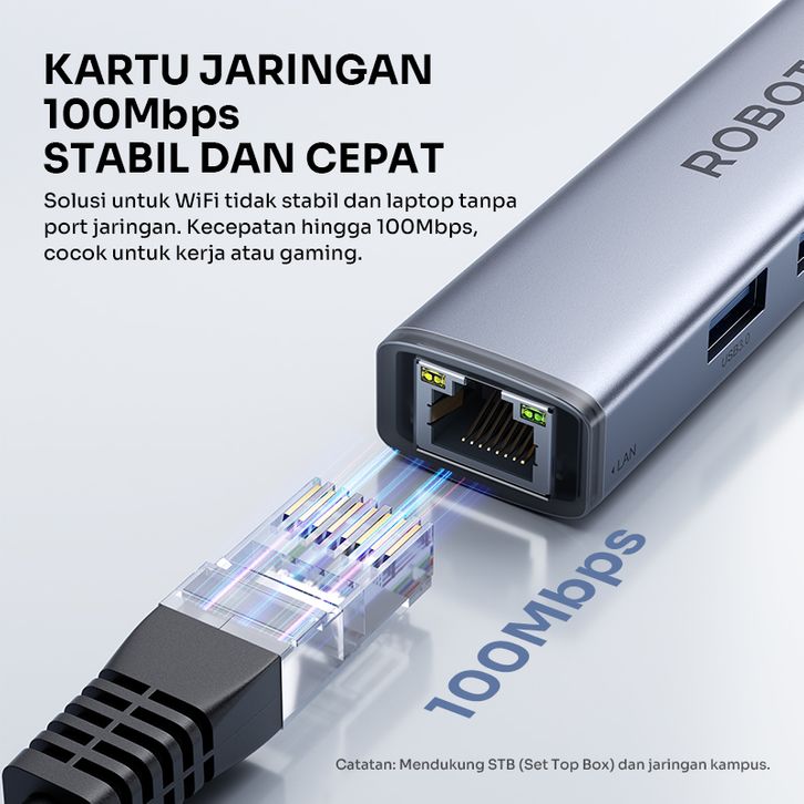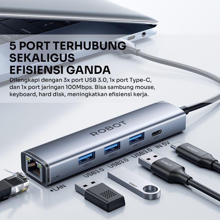 ROBOT USB Hub 5-in-1 Converter LAN 100 Mbps USB A Type-C HEA200/HEA200C Original