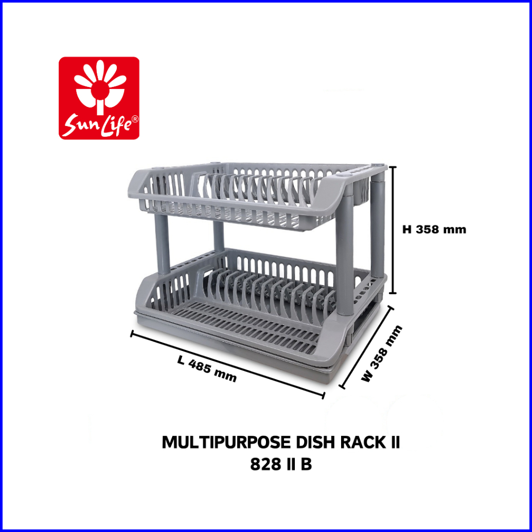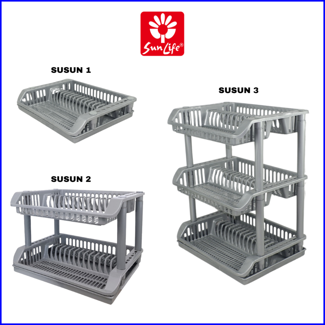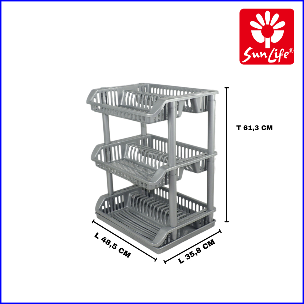 Sunlife Multipurpose Dish Rack Rak Piring Plastik 1 - 3 Susun Dengan Nampan Rak Cuci Piring Serbaguna Snl-828-b-grey