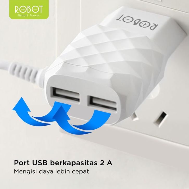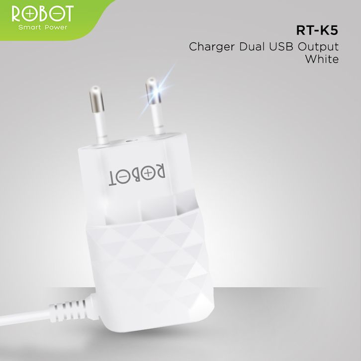 ROBOT Kepala Charger Fast Charging Adaptor Charger Kabel Micro for Android RT-K5 Original
