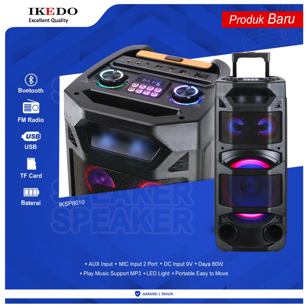 IKEDO Speaker Aktif 10 inch Bluetooth Extra Bass Wireless Karaoke Portable TWS Speaker IKSP8010 [GRATIS PACKING KAYU]