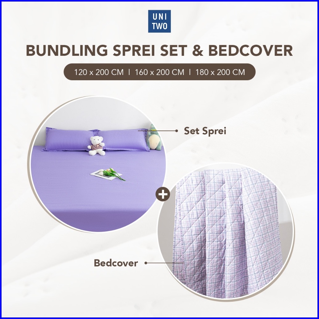 Unitwo Bed Cover Sprei Set Bed Cover Set Dengan Sprei Set Sarung Bantal Dan Sarung Guling Full Pressing Karet Keliling K