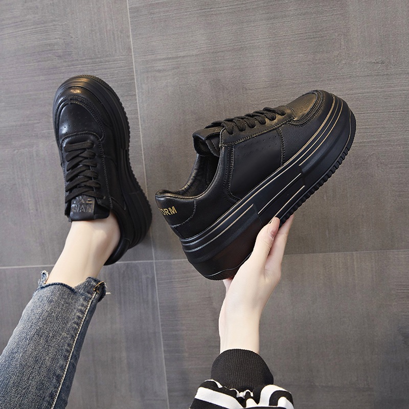 Sepatu Sekolah Wanita Hitam Polos Bertali Kasual Kuliah Sepatu Sneakers Wanita Korea Hana Series