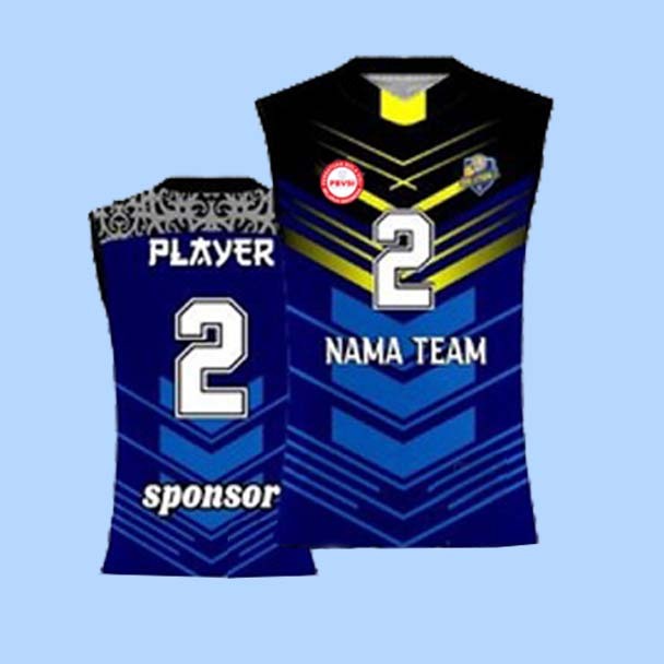 Jersey voli / volly pria wanita full printing biru gradasi hitam free nama nomor dan logo
