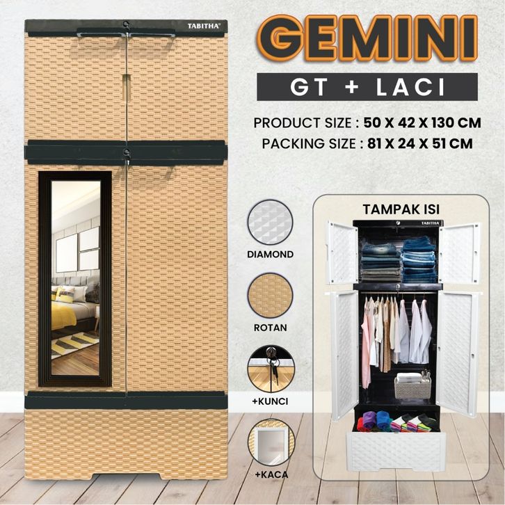 TANPA DP Lemari Plastik Lemari Pakaian Plastik Tabitha Gemini Lemari Plastik Jumbo Serbaguna Full Kunci Cermin Minimalis