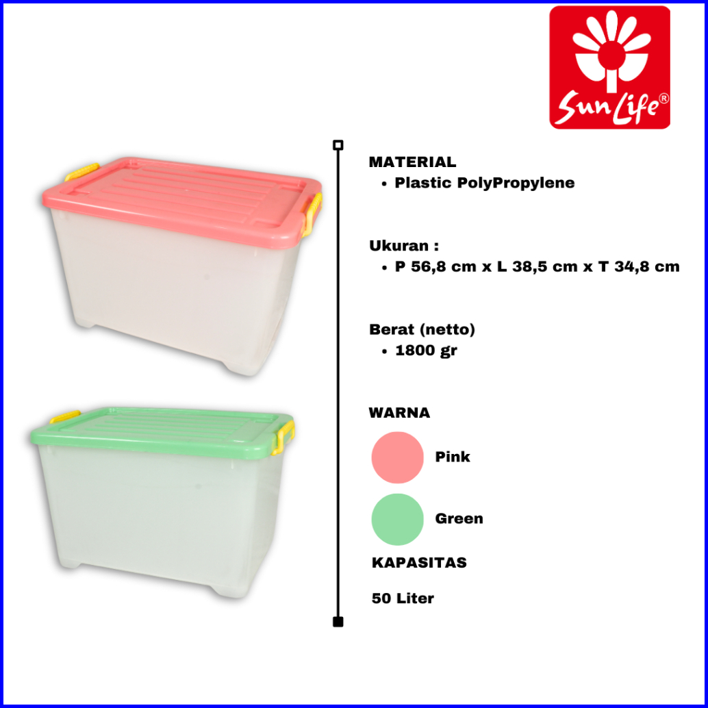 Sunlife Lotus Container 50 Liter Container Besar Plastik Dengan Tutup Container Box Serbaguna Snl-6900