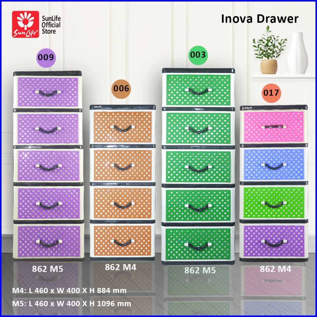 Sunlife Inova Drawer Lemari Pakaian 4 5 Susun - Rak Drawer Plastik Kokoh Dan Modern Snl-862