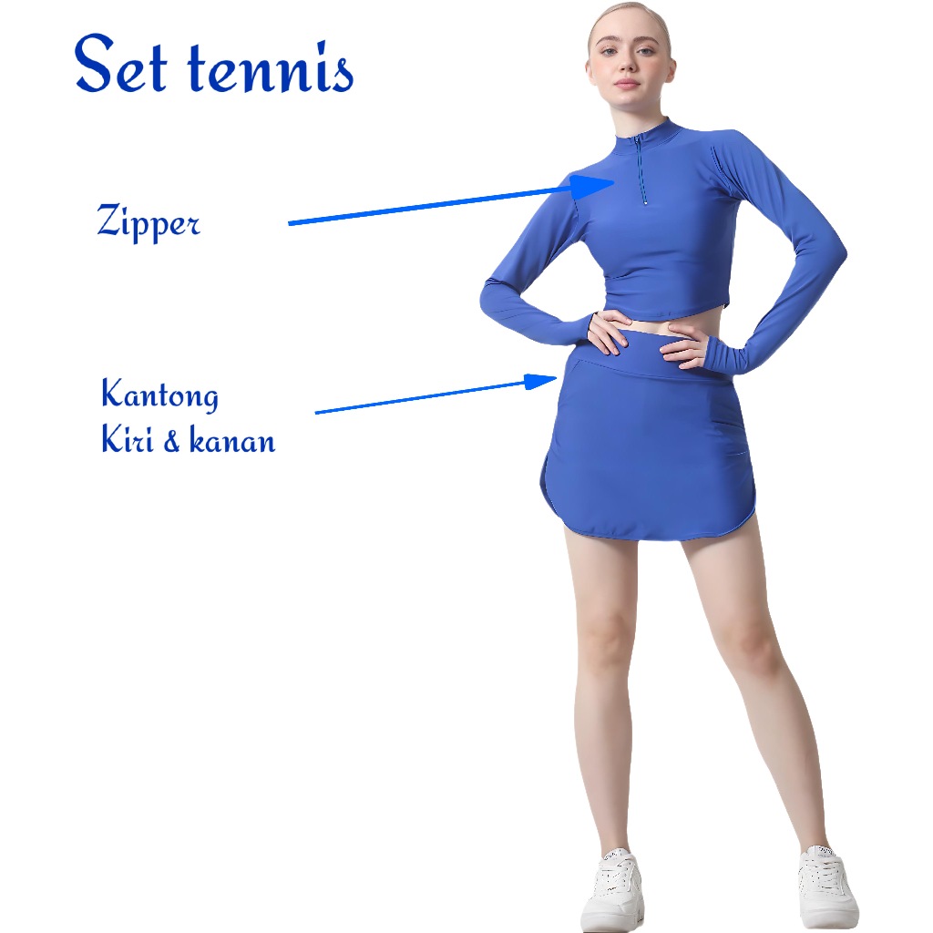 NS Tennis Crop Tracksuit - Set Baju Olahraga, Sportwear, Activewear, Running, Gym, Tennis, Badminton, Yoga, Aerobic, Zum