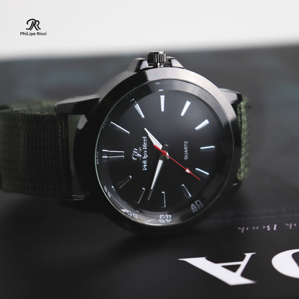 PhiLipe Ricci Jam Tangan Pria Terbaru Tali Kanvas Analog KNVS2 Free Box