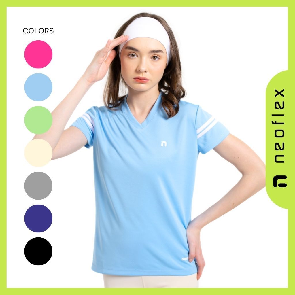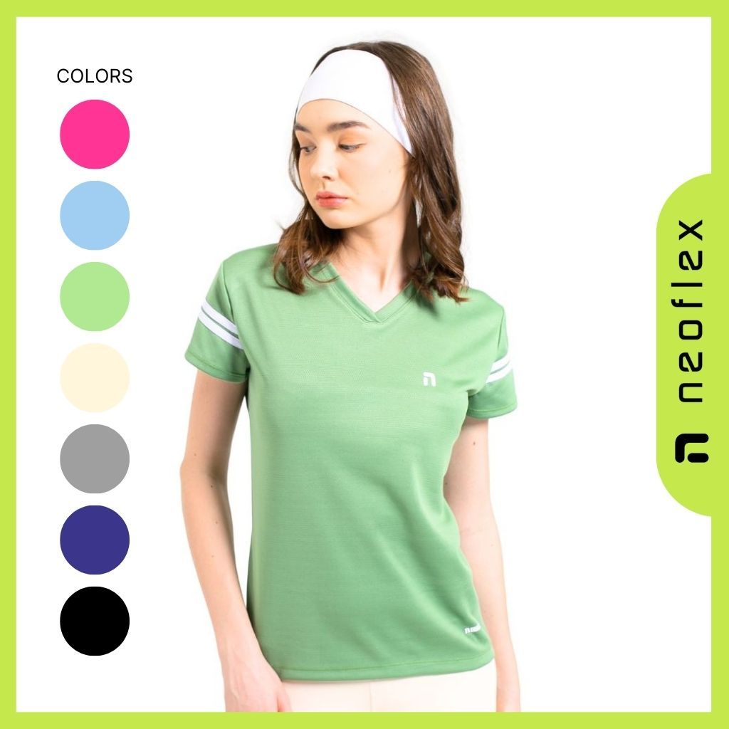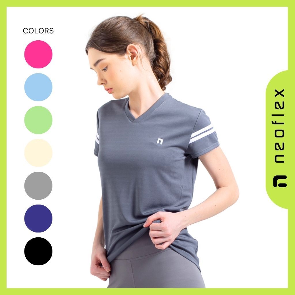 Baju Olahraga Wanita Lengan Pendek Dry Fit Kaos Running Lari Badminton Tennis Voli Gym Cewek Jersey Slim Fit - NEOFLEX