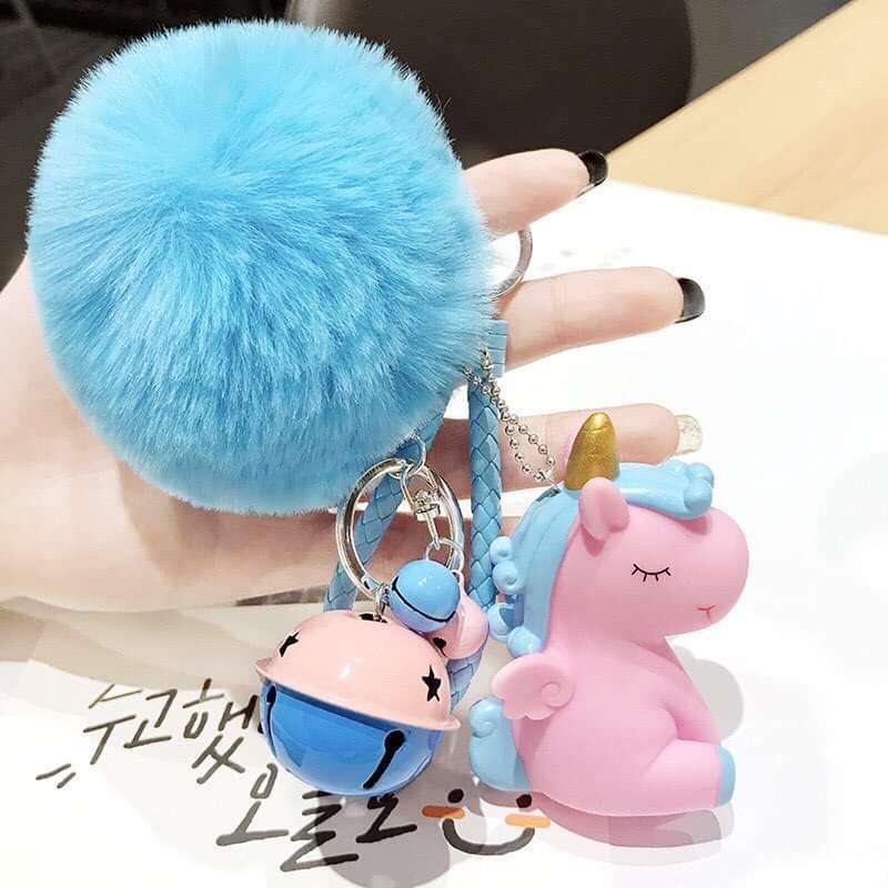 Gantungan Tas Unicorn Pom Pom Fluffy Plastik
