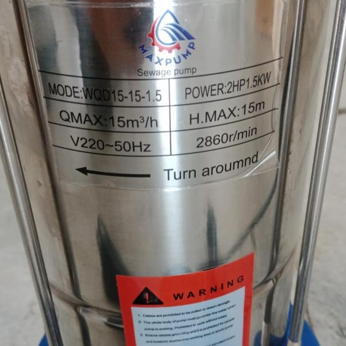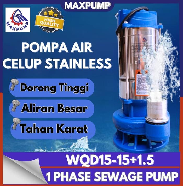 MAXPUMP Pompa Celup Air Kotor WQD15-15-1.5 1500W 220V Stainless Steel 2 Inci Aliran Besar Dorong