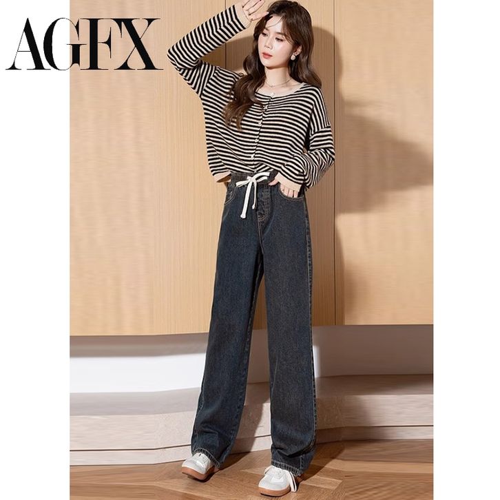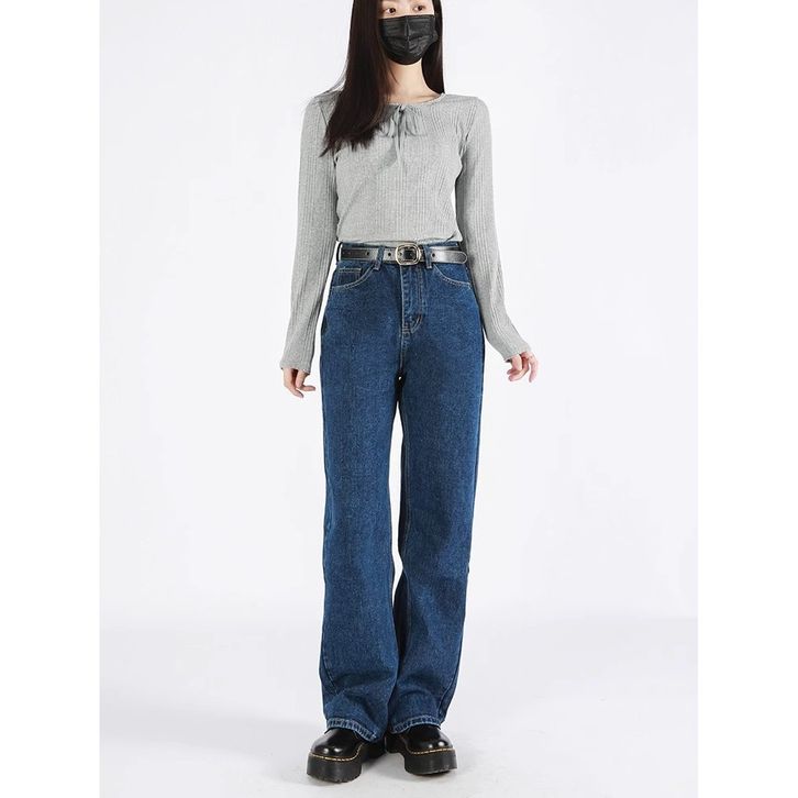 Celana Jeans Pria dan Wanita Highwaist Loose Straight Korean Style Kekinian Unisex