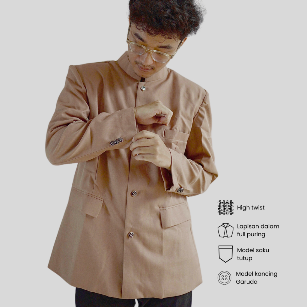 Beskap Jas Koko Coklat Muda Polos Saku Tutup Warna Alam Pria Muslim Premium Formal Informal S-XXL